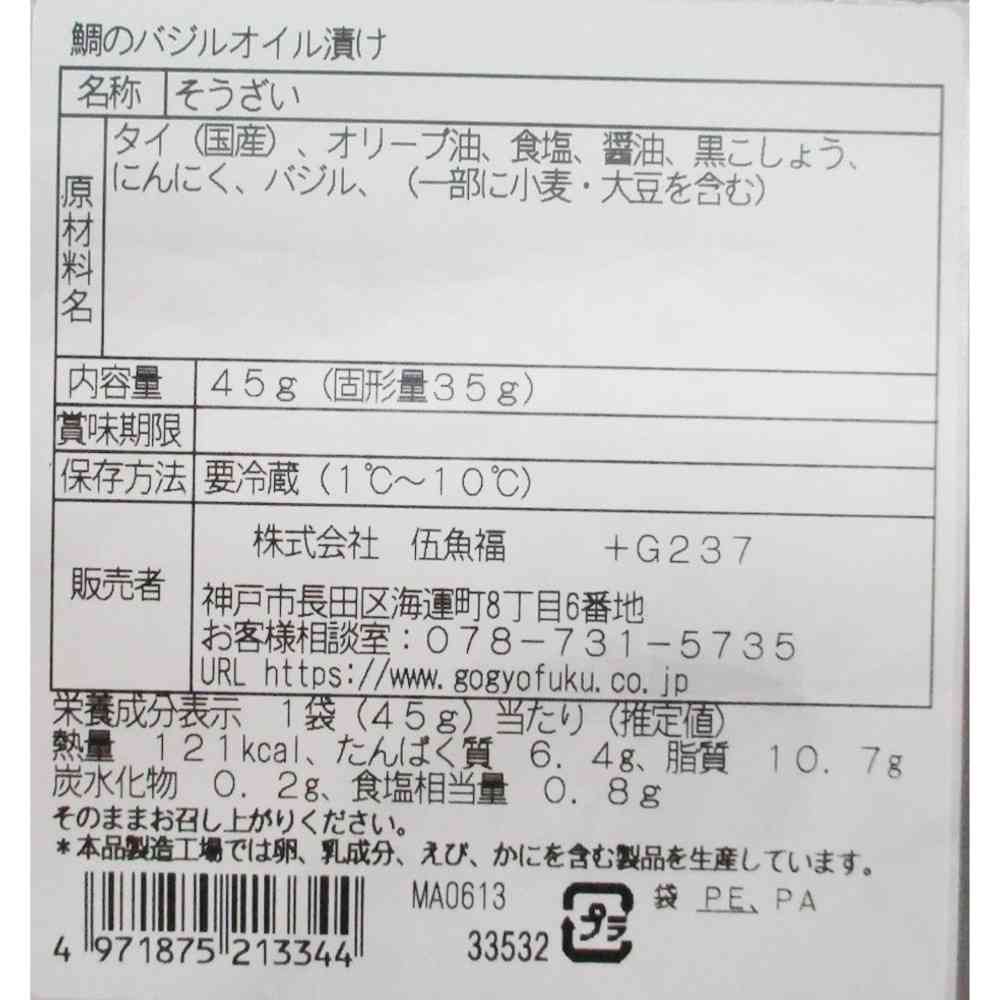 ![◆[冷蔵] 伍魚福 鯛のバジルオイル漬け45g×10個[直送品・クール便] 返品・キャンセル・他商品と同時購入は不可](/img/0170/goods/3/7178860-0010_4.jpg)