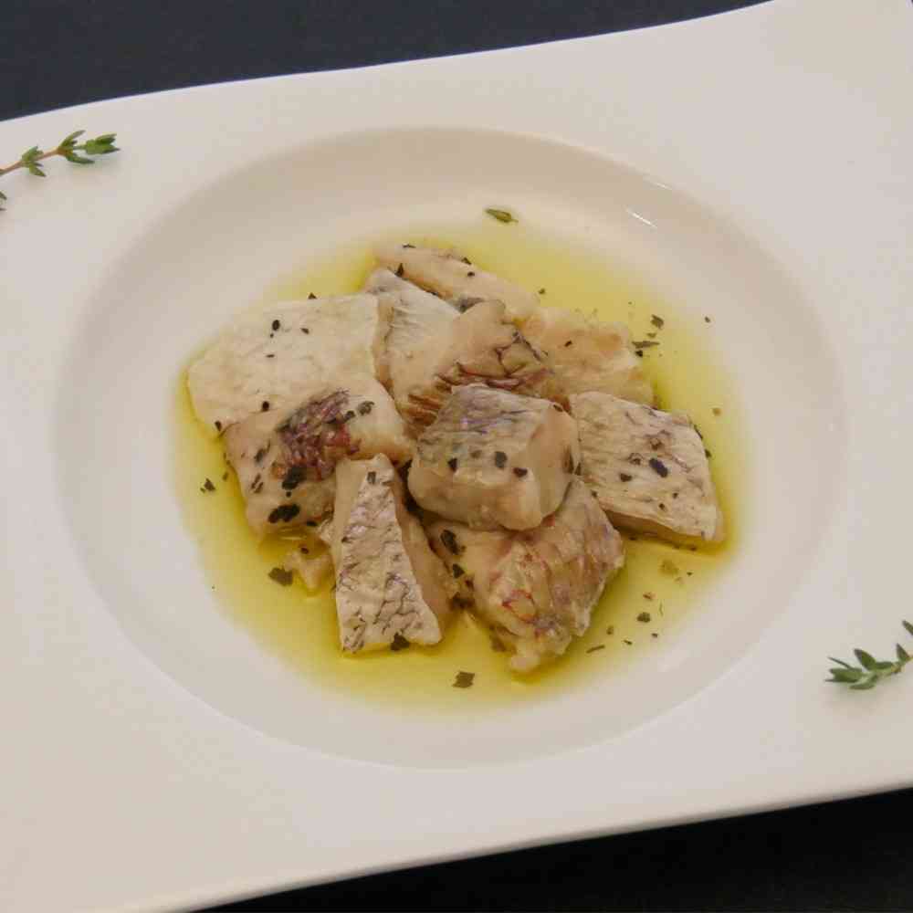 国産の鯛をオリーブオイルとバジルで漬込みしっとりとした食感に仕上げました。冷やしたスパークリングワインと一緒にお楽しみください。