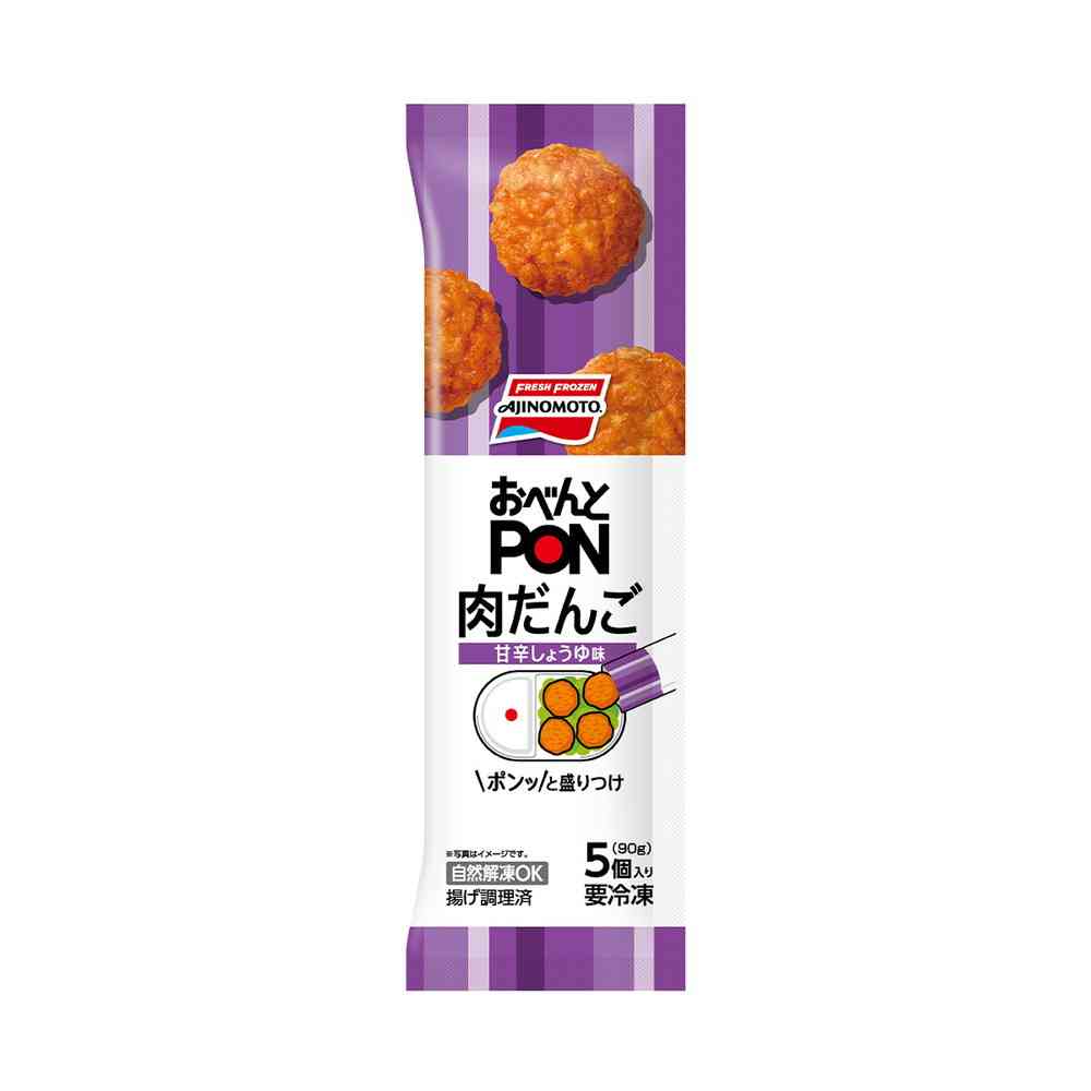 味の素おべんとPON肉だんご、おべんとPON肉団子、冷凍肉だんご、甘辛しょうゆ肉だんご、自然解凍、おかず、お弁当用冷凍おかず、鶏ひき肉、肉だんご、ご飯が進むおかず、冷凍お弁当おかず、スティック冷凍おかず、簡単お弁当おかず、味の素、冷凍食品