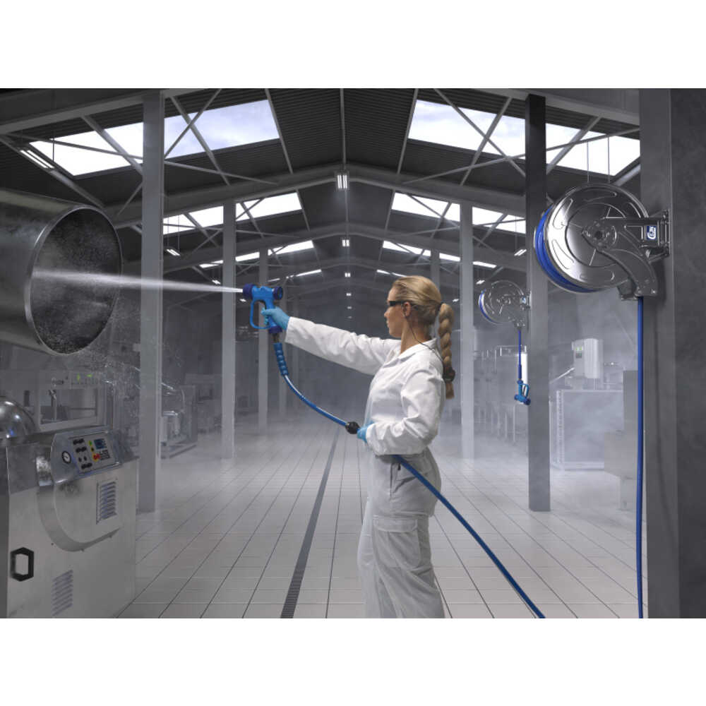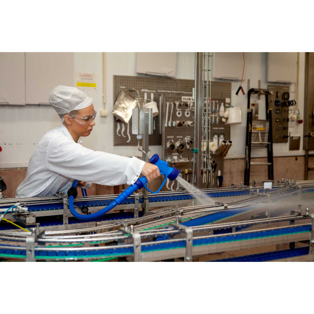 ●吸入口がスイベル式で、ホースの捻じれなどによる影響がないため、快適に作業可能です。●流路の材質は真鍮とステンレスを選択可能です。●レバーの握りによる噴射角度をワイドからストーレートに調整可能です。●本体はプラスチック/ゴムで覆われているため、接触によるダメージを防止するとともに、作業者が温度による影響を受けづらくなっています。●高さ(mm):212●長さ(mm):175●本体材質:PA66、ステンレス製●ノズル外径(mm):65●使用圧力(MPa):2.4●噴出形状:ストレート/ワイド●使用流体:水、温水●流路材質:ステンレス●接続部:G1/2メネジ スイベル●定格流量:60L/分●スイベル式 質量1.1kg