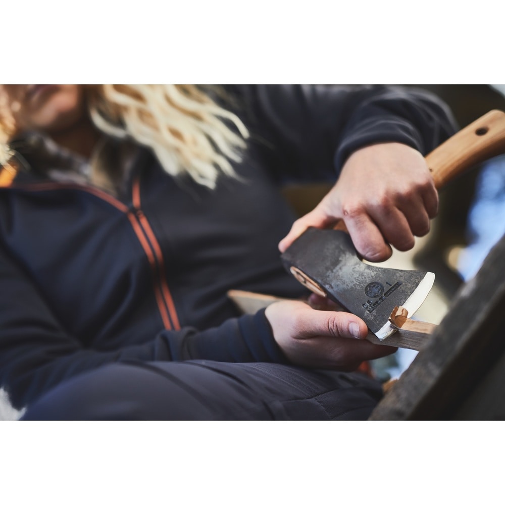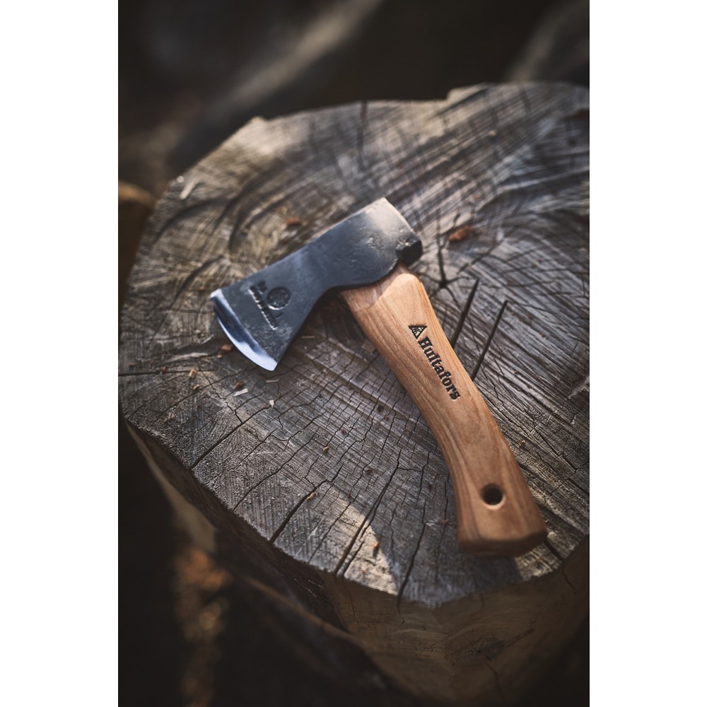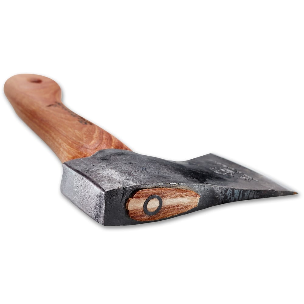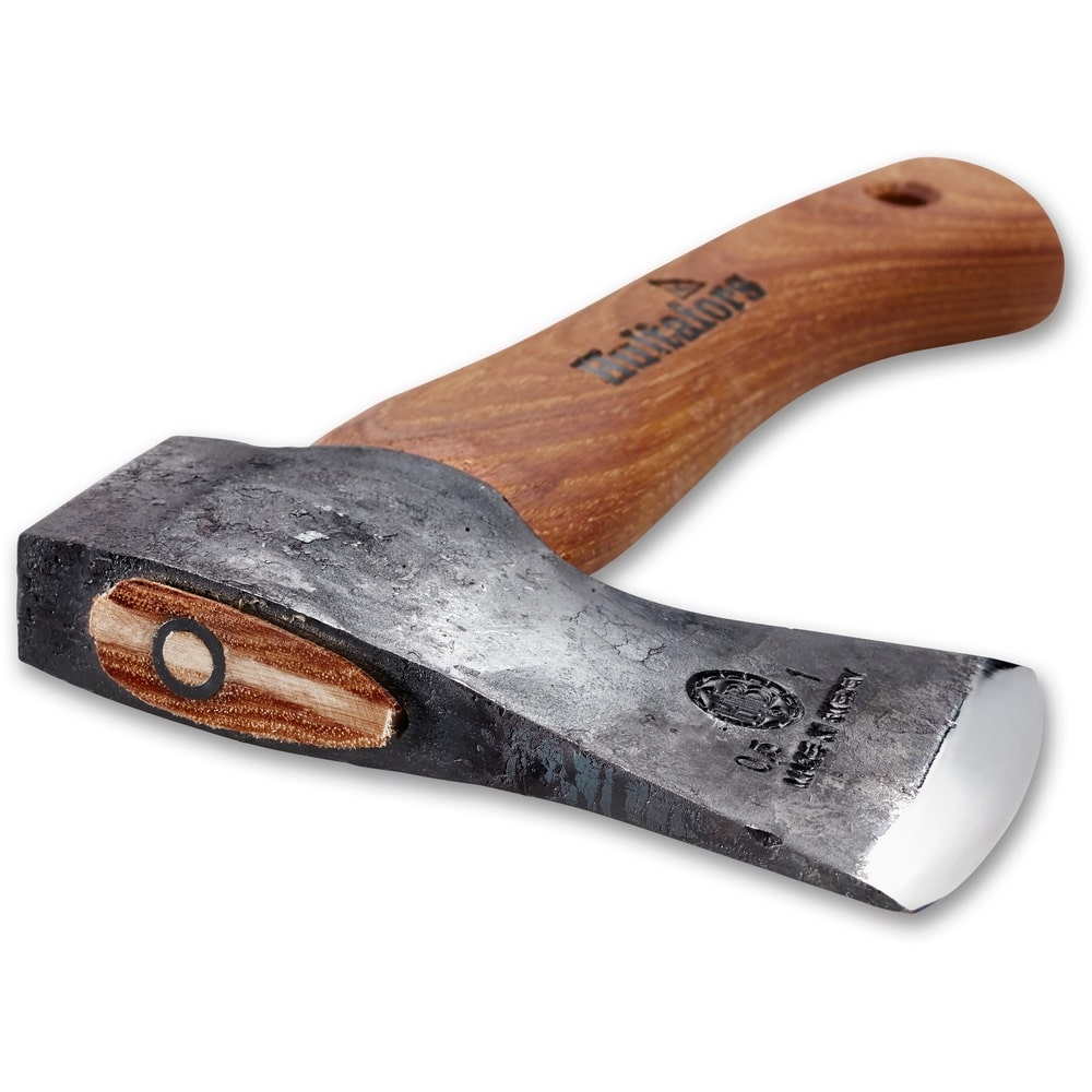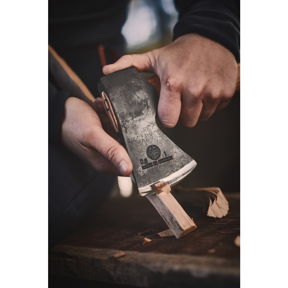 ●高品質なスウェーデン鋼を使っています。●ハンディーで使いやすい手斧です。●柄が短くアウトドアに重宝します。●刃は職人によって丁寧に鍛造されており耐久性に優れます。●刃は研磨されておりすぐに使用できます。●革製の保護カバー付きです。●亜麻仁油で処理されたハンドルで、防カビ・防腐・撥水効果があります。●刃長(mm):74●全長(mm):280●適合ハンドル:842760 質量0.76kg