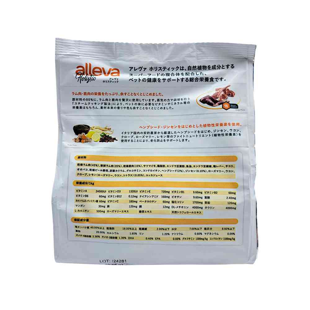 乾燥ラム肉(42%)、新鮮骨抜きラム肉(20%)、乾燥鹿肉(12%)、サツマイモ、鶏脂肪、エンドウ豆デンプン、ヘンプシード(2%)、ニシン油、エンドウ豆繊維、鶏レバー、チコリ根、オオバコ、乾燥ビール酵母、炭酸カリウム、グルコサミン、コンドロイチン硫酸、高麗人参(0.10%)、ローズマリー、ウコン、クローブ、レモン(0.05%)、ユッカジュース