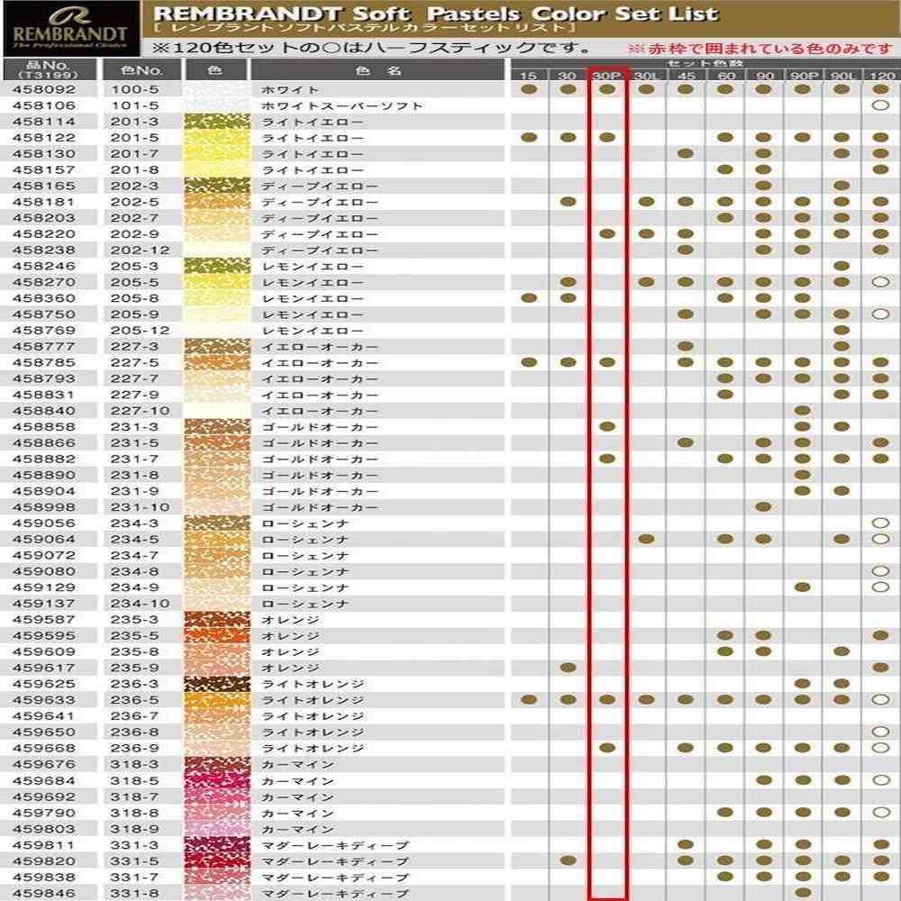 レンブラントソフトパステル ソフトパステル30色セット 人物画用パステル ポートレート用パステル プロ用パステルセット 高級パステル ロイヤルターレンス画材 高発色パステル 耐光性パステル 美術用ソフトパステル