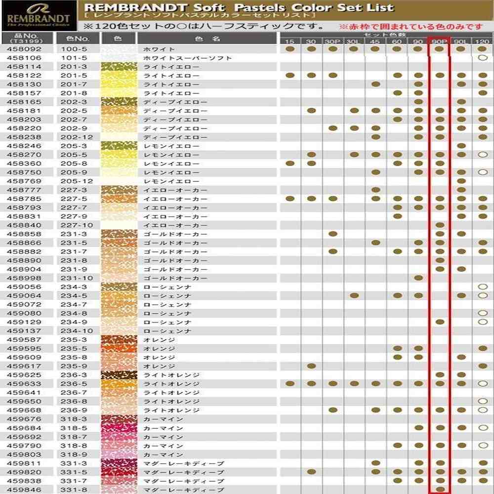 レンブラントソフトパステル ソフトパステル90色セット 人物画用パステル ポートレート用パステル プロ用パステルセット 高級パステル ロイヤルターレンス画材 高発色パステル 耐光性パステル 美術用ソフトパステル
