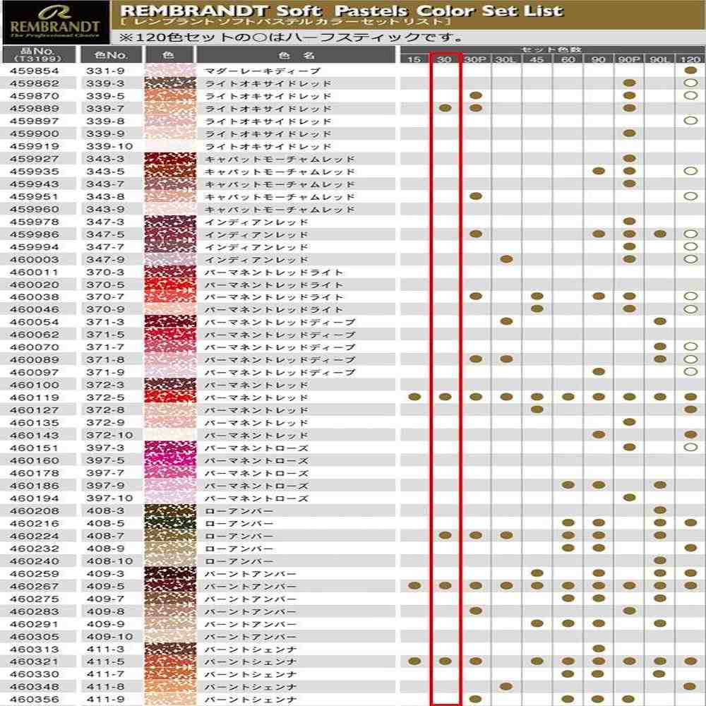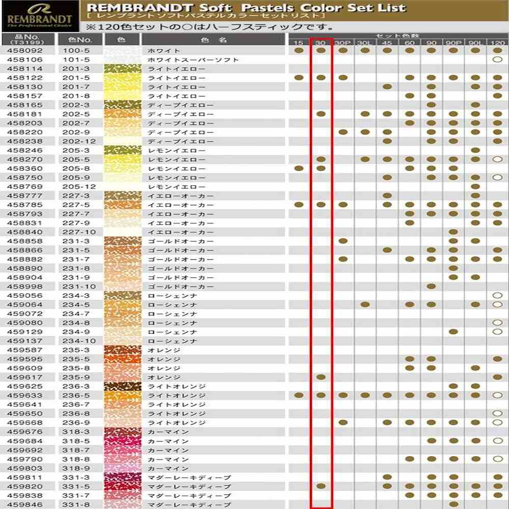 レンブラントソフトパステル ハーフパステル30色セット ソフトパステルセット プロ用パステル 高級パステルセット ロイヤルターレンス画材 高発色パステル 耐光性パステル デッサン用パステルセット 美術用ソフトパステル