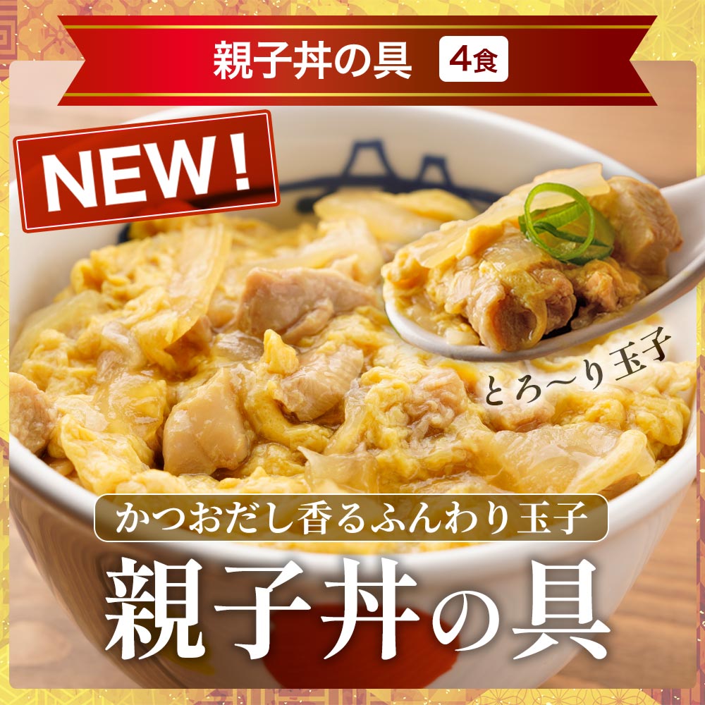 【原材料】鶏肉(ブラジル産)、玉ねぎ(中国産又は国産)、液全卵、かつおだし、しょうゆ、砂糖、清酒、本みりん,チキンブイヨン,風味調味料/増粘剤(加工でん粉, キサンタンガム),着色料(カロチノイド),調味料(アミノ酸等),(一部に卵・小麦・さば・大豆・鶏肉を含む)