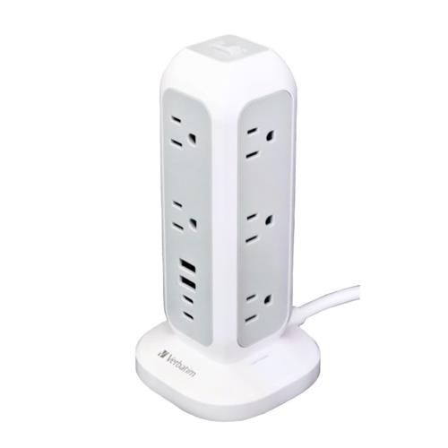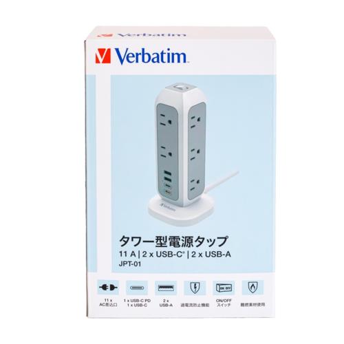 ■11個口およびUSB-Cポートを2個、USB-Aポートを2個備えたタワー型の電源タップ