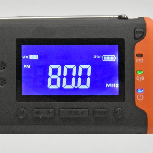 ■4通りの充電方法により蓄えた電力で、ラジオ放送の受信、スマートフォンの充電や、懐中電灯、SOSアラームと、コンパクトな本体にもしもに頼れる機能が満載。