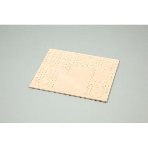 ■しなベニヤを机と椅子の形にトムソン抜加工してあります