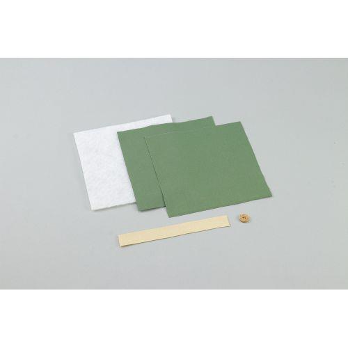 セット内容 : 布地(170×170mm)×2、キルト芯(170×170mm)×1、ボタン(φ15mm)×1、平紐(20×170mm)×1
