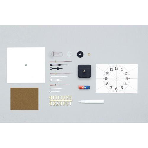 セット内容 : 白彫板(穴アキ加工済)、クォーツ時計B(電池付)、プラ製数字、サンドペーパー、工作ボンド(10g)