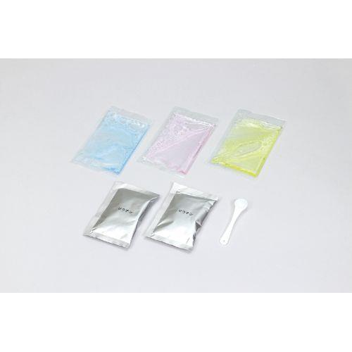 セット内容 : セッケンノ素(ソーダ、ピーチ、レモン)×各1、ゼラチン10g×1、プラスプーン×1
