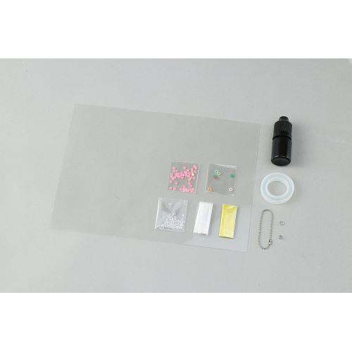 セット内容 : 透明板×1、レジン液(5ml)×1、リング型モールド×1、カラーパウダー(色取混ゼ)×2、パーツ3種セット(色取混ゼ)×1、ボールチェーンセット×1