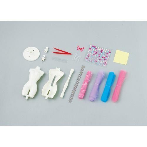 セット内容 : マネキン×1セット、レース布(星柄)×2、レース布(青、ピンク、紫)×各3、ラインストーンシール×1、カラフルシールセット×1、チョウチョ飾リ×1、ピンセット×1、透明ゴム×1セット、透明両面シール×1セット