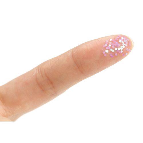 ■約1mmの六角形の形をしたオーロララメ粉グリッターです。ネイルに使ったり、レジンやスライムなどに封入すると、キラキラ輝きます。