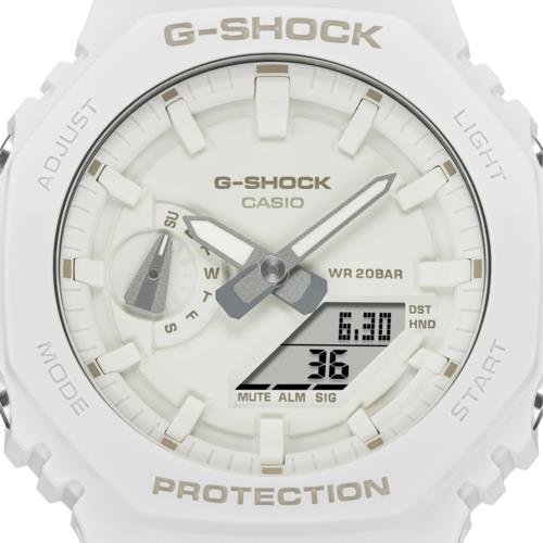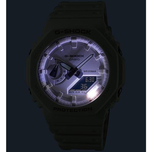 ■ベースモデルはオクタゴンベゼルのGA-2100を採用。人気のカラーリングをケース、ベゼル、バンド、文字板の各パーツに至るまでワントーンで統一し、フェイスも奥行きのあるモデルに仕上げました。
