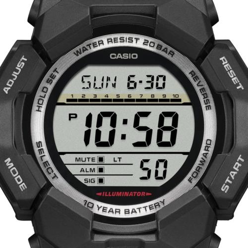 ●ワイドフェイスとビッグケースで、10年バッテリーを搭載したデジタルモデルのGD-010とデジタルアナログコンビモデルのGA-010は、ワールドタイム、ストップウオッチといった基本機能をはじめ、大型フロントボタンで操作しやすいスーパーイルミネーターにより暗闇での視認性も確保します。