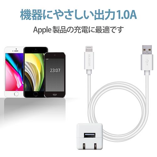 ■家庭用コンセントからLightningコネクタ搭載のiPhoneやiPodを充電できるLightningケーブルを付属したAC充電器です。