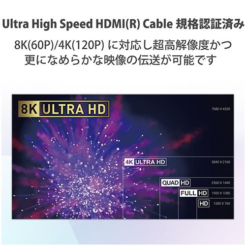 規格:Ultra High Speed HDMI(R)Cable認証取得済