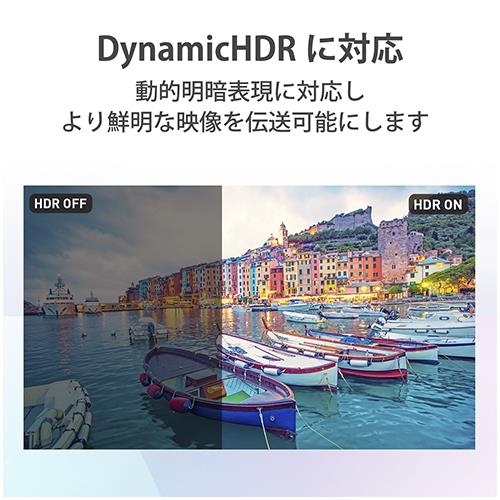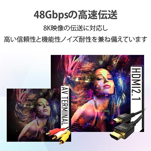 ■8K(60P)/4K(120P)に対応し、超高解像度かつ更になめらかな映像の伝送が可能なUltra High Speed HDMI(R)Cable規格認証済ケーブルです。