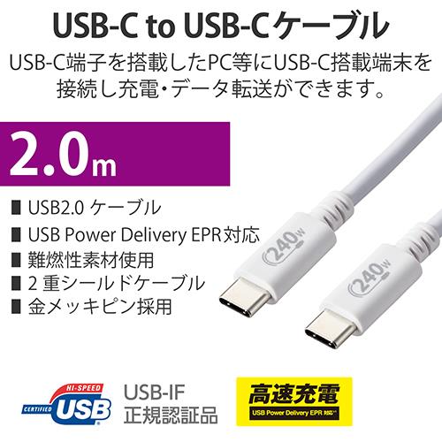 ■USB Type-C(TM)を搭載している機器同士を接続し、充電やデータ転送ができるUSB2.0ケーブルです