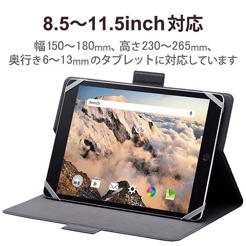 ■8.5~11.5インチのタブレットに対応し、端末の薄さを損ねない薄型タイプの手帳型の汎用タブレットケースです。