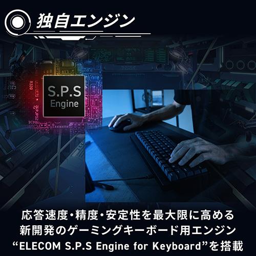 ■キー入力における応答速度(Speed)、精度(Precision)、安定性(Stability)を高めた新開発のゲーミングキーボード用エンジン“ELECOM Wireless S.P.S Engine for Keyboard”を搭載しています