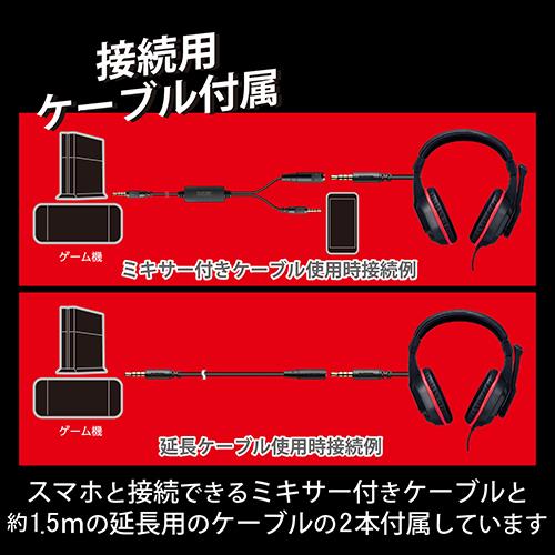 ■ゲームの音とスマートフォンの音を同時に再生できるアナログミキサーを付属した両耳オーバーヘッドタイプのゲーミングヘッドセットです