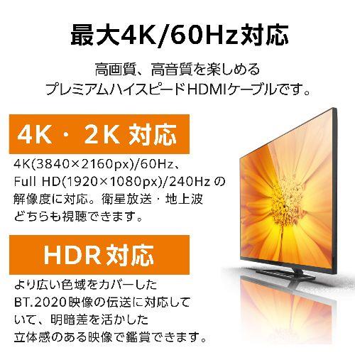 ■最大4K/60Hzの解像度に対応した、イーサネット対応プレミアムハイスピードHDMIケーブルです。