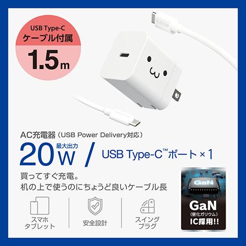 ■USB Power Deliveryに対応したUSB Type-C(TM)ポートを搭載し、対応するスマートフォン、タブレットなどを充電できるUSB AC充電器です。