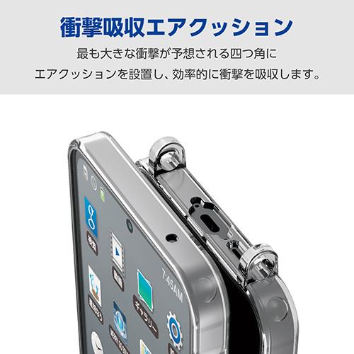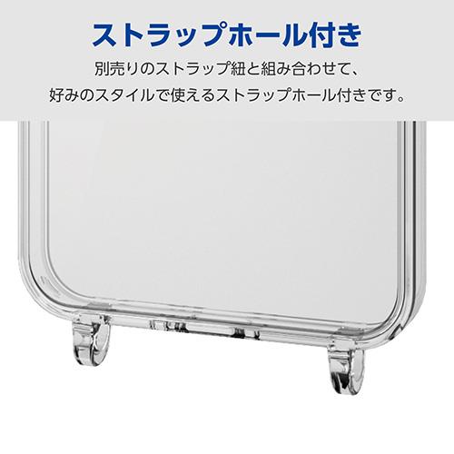 ■持ち運びに便利なスマホショルダーストラップやハンドストラップが取り付けられるストラップホール付き。側面には弾力性があるTPU(熱可塑性ポリウレタン)素材を、背面には強じんで透明度の高いポリカーボネート素材を使用した、スリムなスタイルのハイブリッドケースです。