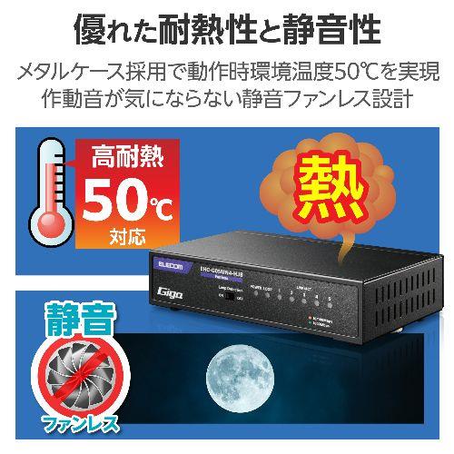 ■Giga(1000BASE-T)対応、電源内蔵のメタル筐体5ポートスイッチングハブです