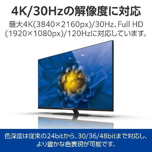 対応解像度:最大4K(3840×2160px)/30Hz、FullHD(1920×1080px)/120Hz