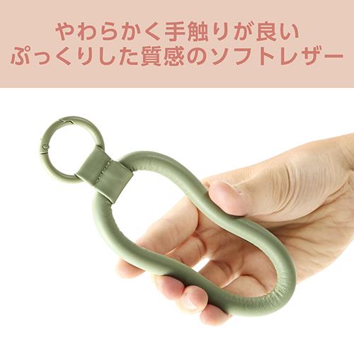 ■レザーの質感が特徴で、手首に通して使えるリングタイプのスマホハンドストラップです。