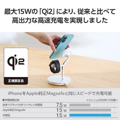 出力:スタンド部Qi2:5W/7.5W/15W、台座部Qi:5W、Apple Watch:高速充電対応