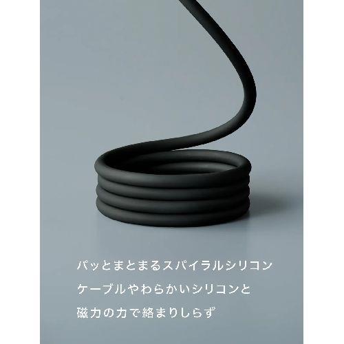 ■ケーブル自体が磁力でくっついてまとまり、コイルケーブルのようにスパイラル状に自動できれいに収納されます