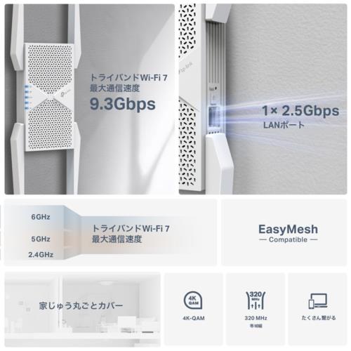 5760Mbps(6GHz)・2880Mbps(5GHz)・688Mbps(2.4GHz)の専用バンドを備え、混雑や干渉の少ない高速でシームレスな接続を実現します。(※速度は理論値)