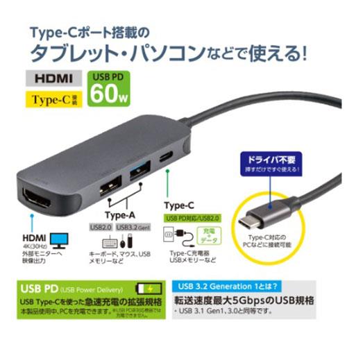 インターフェース ダウンストリーム(接続機器側):USB Type-A(USB3.2Gen1)メスx1、USB Type-C(USB2.0 Alt mode非対応)メスx1、USB Type-A(USB2.0)メスx1、HDMI(タイプA)メスx1