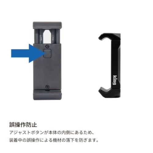 アジャストボタンが本体の内側にあるため、装着中の誤操作による機材の落下を防ぎます。