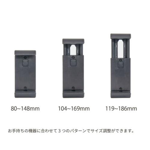 80mm~186mmまで使えるため、タブレットとスマホの両方に対応できます。