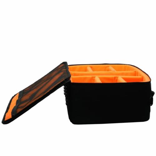 ■内装色は暗所での視認性を高めるオレンジ色を採用、天面内側に小物類が収納できるメッシュポケットを配置