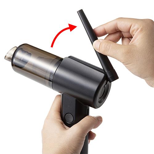 ■電動エアダスターのノズルは折り畳み式なので、バキュームクリーナーとして使用するときに邪魔になりません。