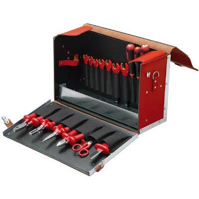 ・ニッパー160mm、ペンチ180mm、ロングノーズプライヤー160mm、ワイヤーストリッパー、マイナスドライバー4本([[(-)]]3、4、5.5、6.5)、プラスドライバー([[(+)]]1、2)、片口スパナ10、11、12、13、14、17、19mm、ストレートナイフ、ハサミ180mm