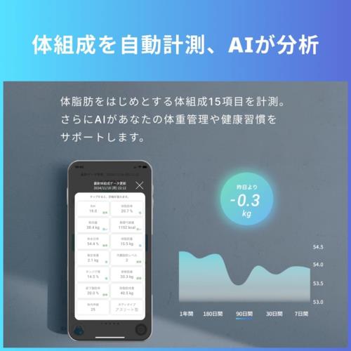 ■体重、BMIに加え体脂肪率や筋肉量などの15項目の測定が可能に進化。