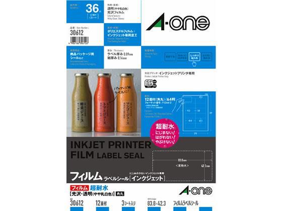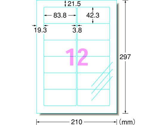 冷蔵庫から取り出したガラス瓶などの結露でラベルシールがはがれません。下地が活かせる透明素材です。●ラベルサイズ:83.8×42.3mm●シートサイズ:A4(210×297mm)●材質:ポリエステルフィルム+インクジェット専用塗工●総厚:0.14mm●ラベル厚:0.09mm●仕様:12面四辺余白付●光沢タイプ●適応プリンタ:インクジェット(染料/顔料)●注文単位:1冊(3シート)