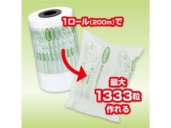 必要な量を必要な時にすぐに作成できる。収納スペースに貢献します。エアーコントローラーで空気量を調整できます。エアクッションフィルムは200mのロールタイプで1巻き単位で安価に購入可能。●本体寸法:120×120×200mm●空気封入後寸法:150×200mm(ピロータイプ)●質量:1.64kg●ロール長さ:200メートル(最大1333粒作成可能)●フィルム厚み:20ミクロン●材質:HDPE(高密度ポリエチレン)●適合機械:ACM01 エアクッションメーカー(別売り)●環境情報:SGSにて認証を受けた無毒性フィルム材料を使用。Rohs規制物質不含有。燃やしても塩化水素ガスが発生しません。●GPNエコ商品ねっと掲載