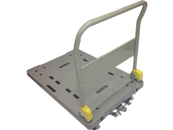 キャスター部からの金属音をカットした低騒音タイプ。走行騒音40dB以下を実現。●サイズ:幅600×奥行930mm●重量:16.6kg●材質:荷台/ポリプロピレン、キャスター/ブタジエンラバー●最大積載荷重:300kg●荷台高さ:215mm●ハンドル高さ:905mm●車輪径:130mm●ハンドル折りたたみ式●滑り止めゴム付き●フットブレーキ付き●安全カバー付なので折りたたむ時も指をはさむ心配がありません。