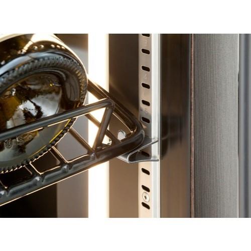 庫内のガイドレール上のフックの調整と標準装備のラックを前後反転することで、傾斜ラックとして使用できます。従来機種ST-407G(WB)よりも急な傾斜角度でセッティングできるようになり、ディスプレイ効果が更に向上しました。※傾斜ラックとして使用時は収納本数が減ります。