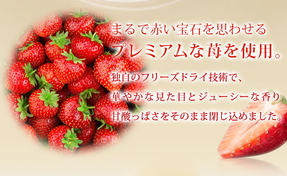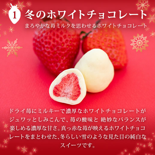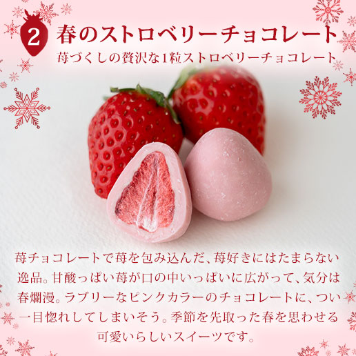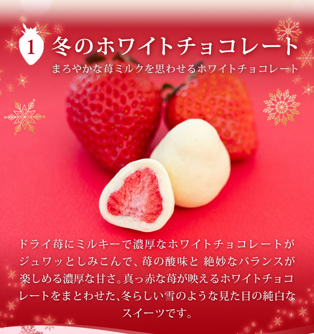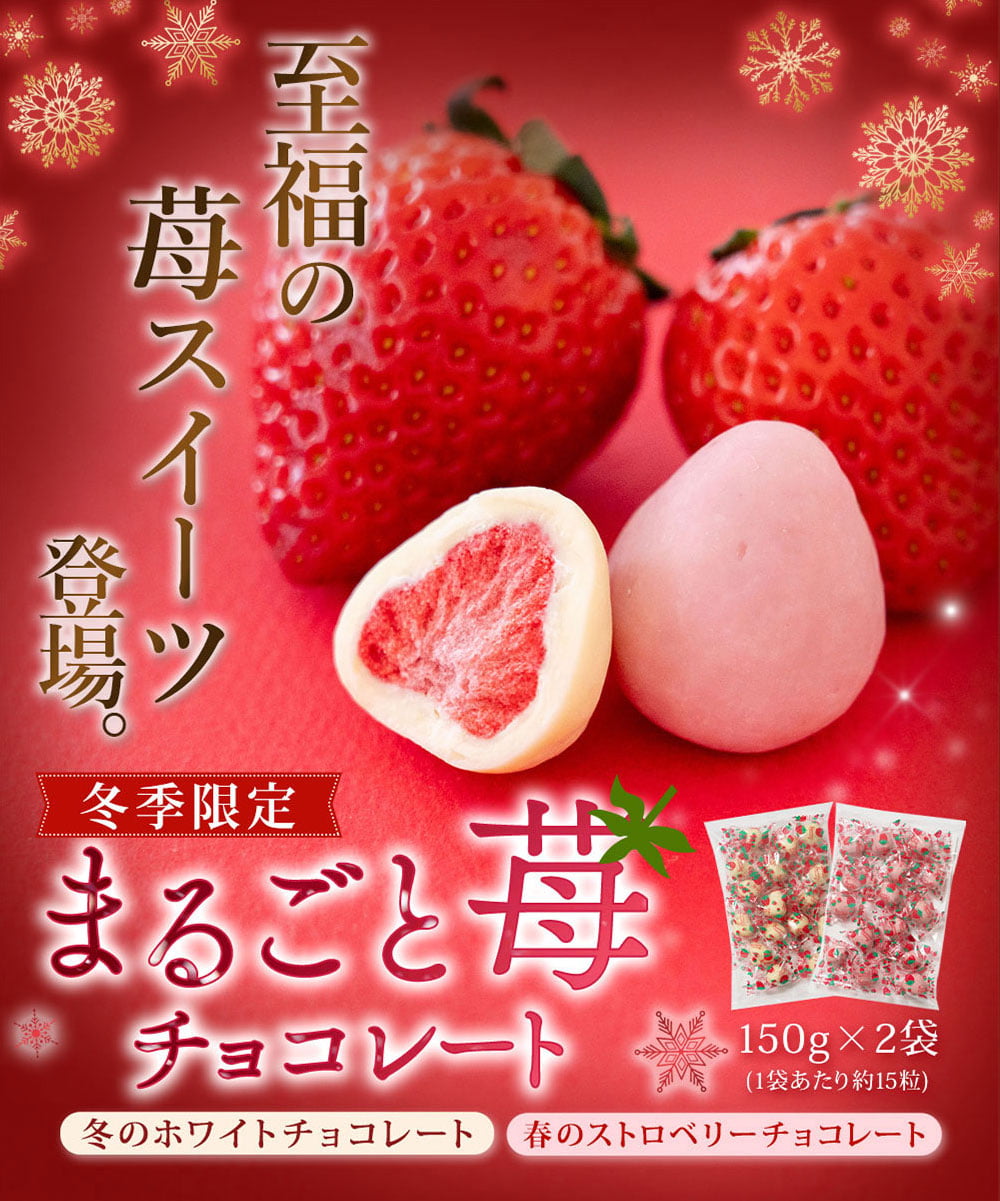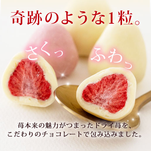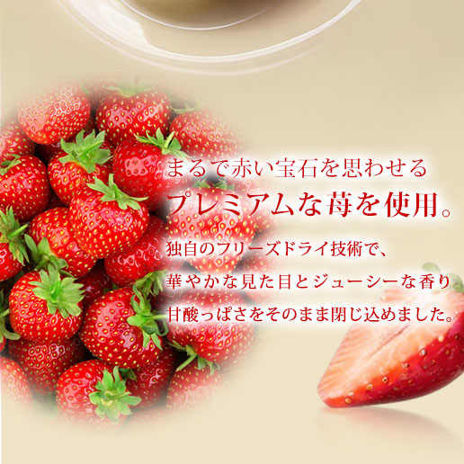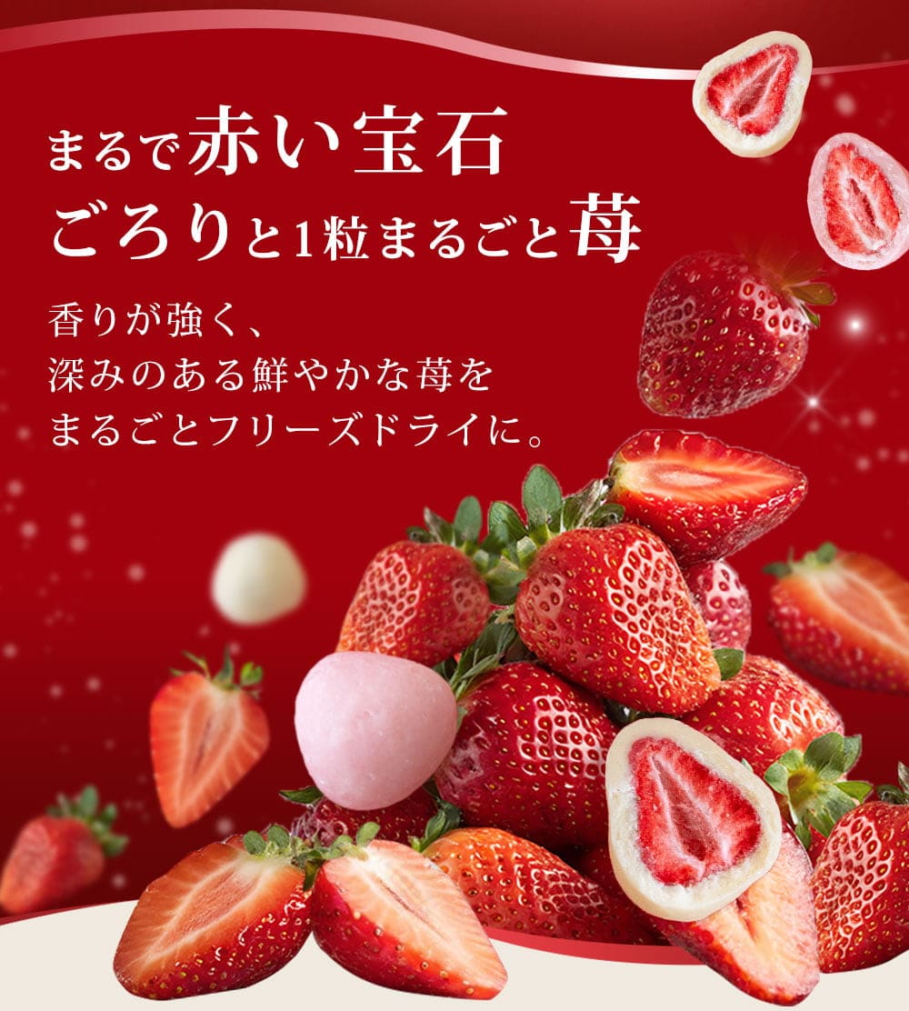 ホワイトチョコ準チョコレート(砂糖、植物油脂、全粉乳、乳糖、ココアバター)(国内製造)、乾燥イチゴ、植物油脂/乳化剤、香料、(一部に乳成分・大豆を含む) ストロベリーチョコ準チョコレート(砂糖、植物油脂、全粉乳、乳糖、ココアバター)(国内製造)、乾燥イチゴ、植物油脂/着色料(ビートレッド)、乳化剤、香料、(一部に乳成分・大豆を含む) |