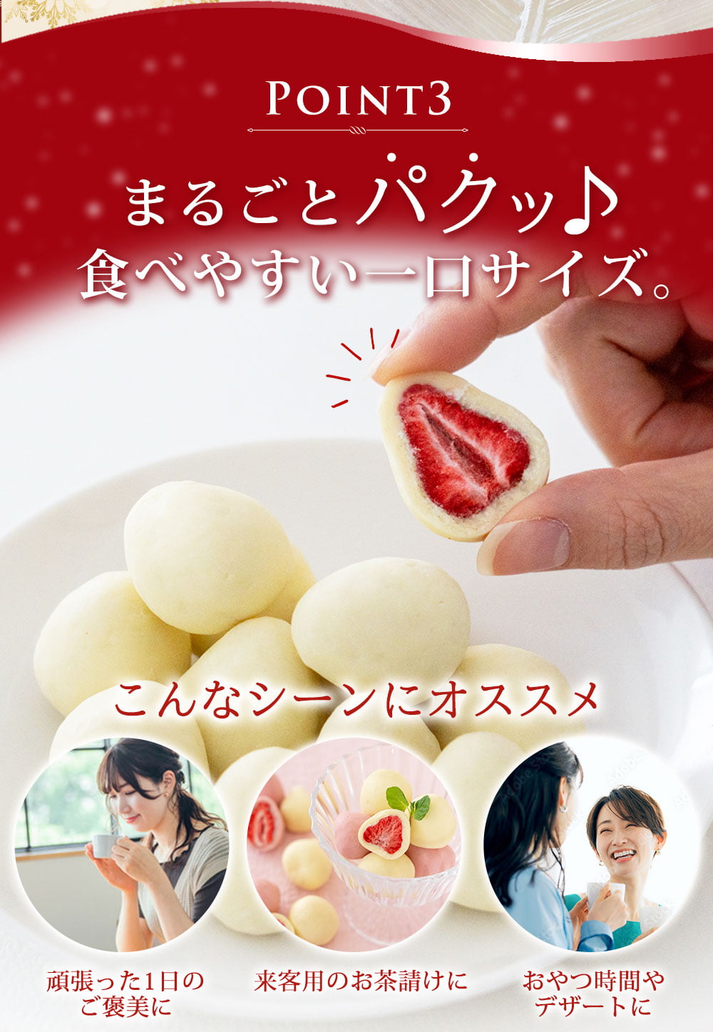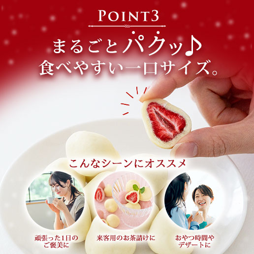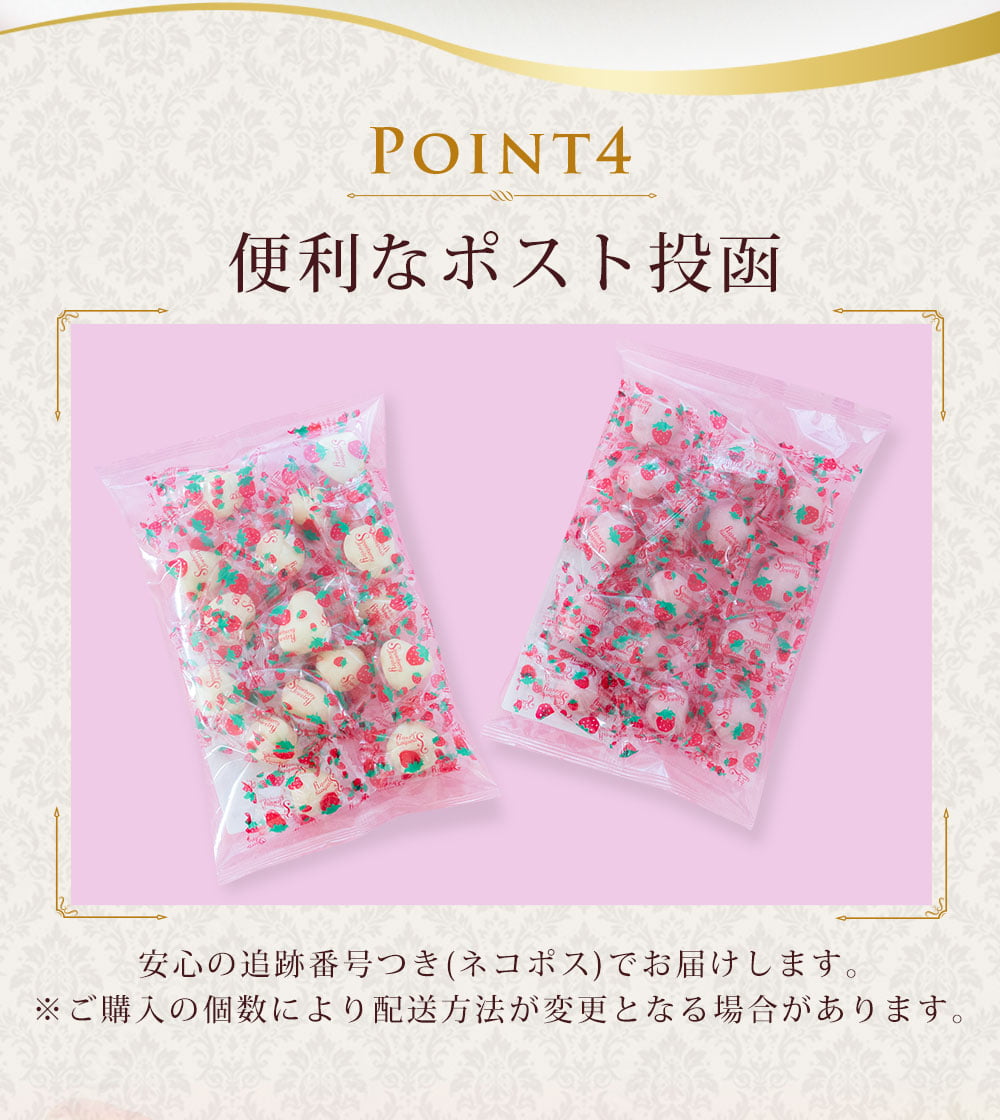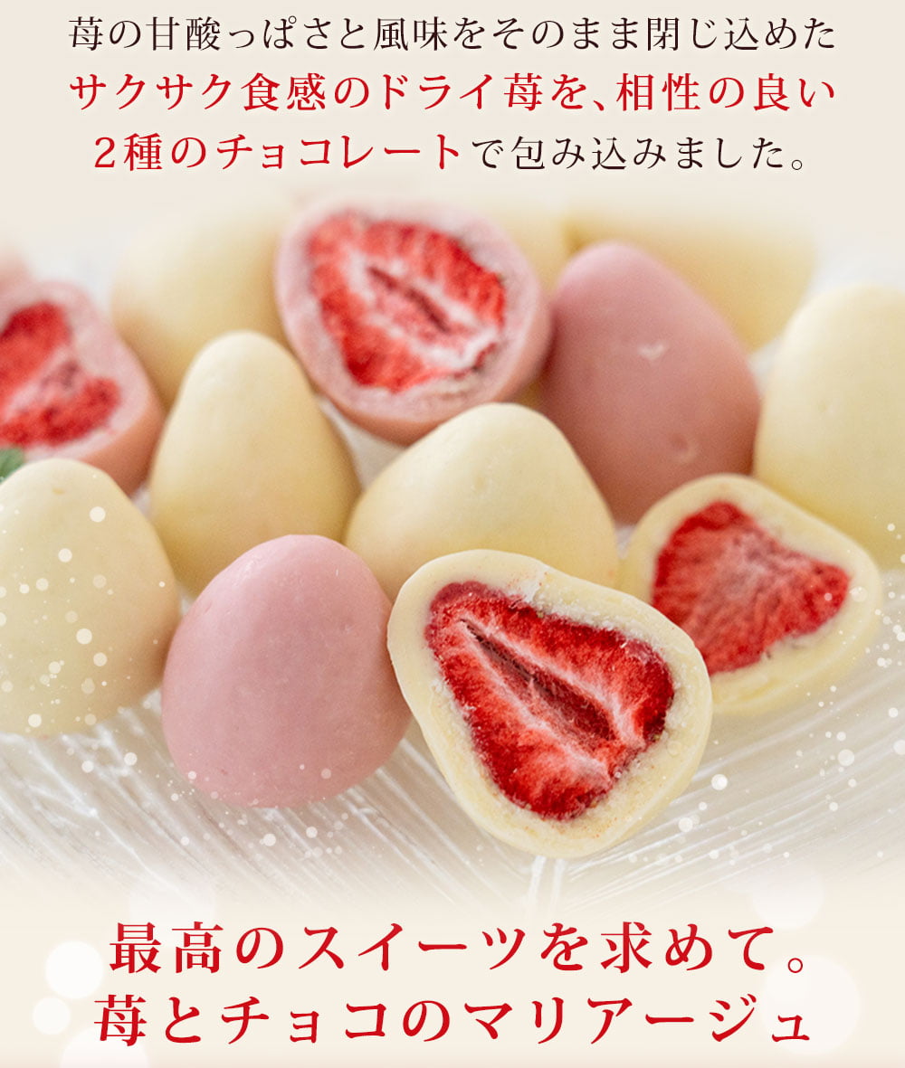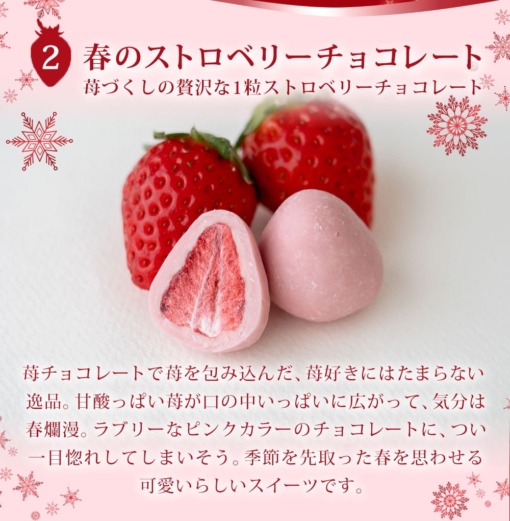 ホワイトチョコ準チョコレート(砂糖、植物油脂、全粉乳、乳糖、ココアバター)(国内製造)、乾燥イチゴ、植物油脂/乳化剤、香料、(一部に乳成分・大豆を含む) ストロベリーチョコ準チョコレート(砂糖、植物油脂、全粉乳、乳糖、ココアバター)(国内製造)、乾燥イチゴ、植物油脂/着色料(ビートレッド)、乳化剤、香料、(一部に乳成分・大豆を含む) |
